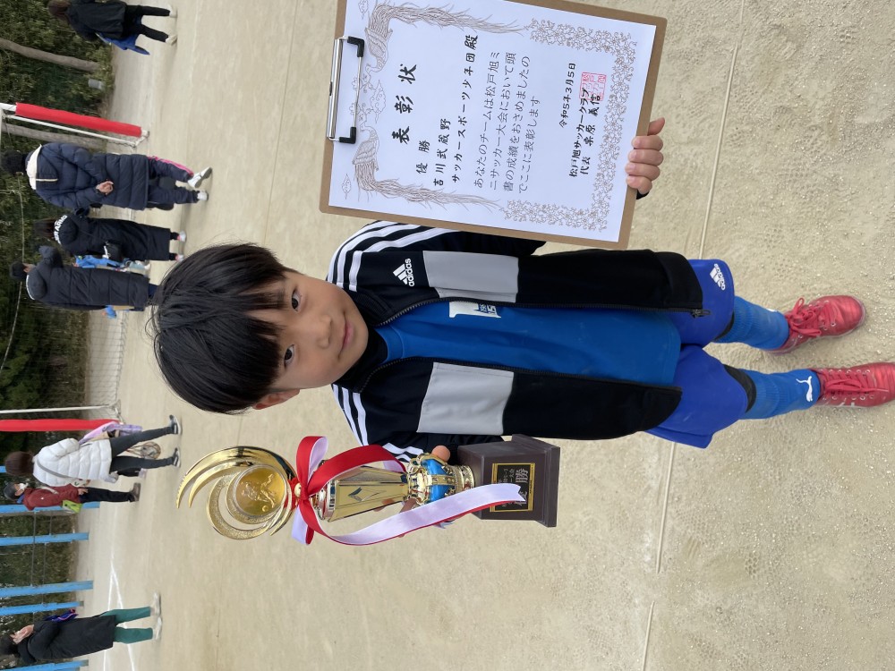 1年生の大会で、1年生2人年長4人で人数ぎりぎりの中、優勝! 最後まであきらめず立ち向かい、しつこく・泥臭く頑張っておりました。 1年間たくさんの大会に参加してきましたが やっとのことで初優勝できました。 今年度もたくさん試合して、たくさん大会に参加して 「勝つ楽しさ」「負ける悔しさ」を一緒に味わっていきましょう。